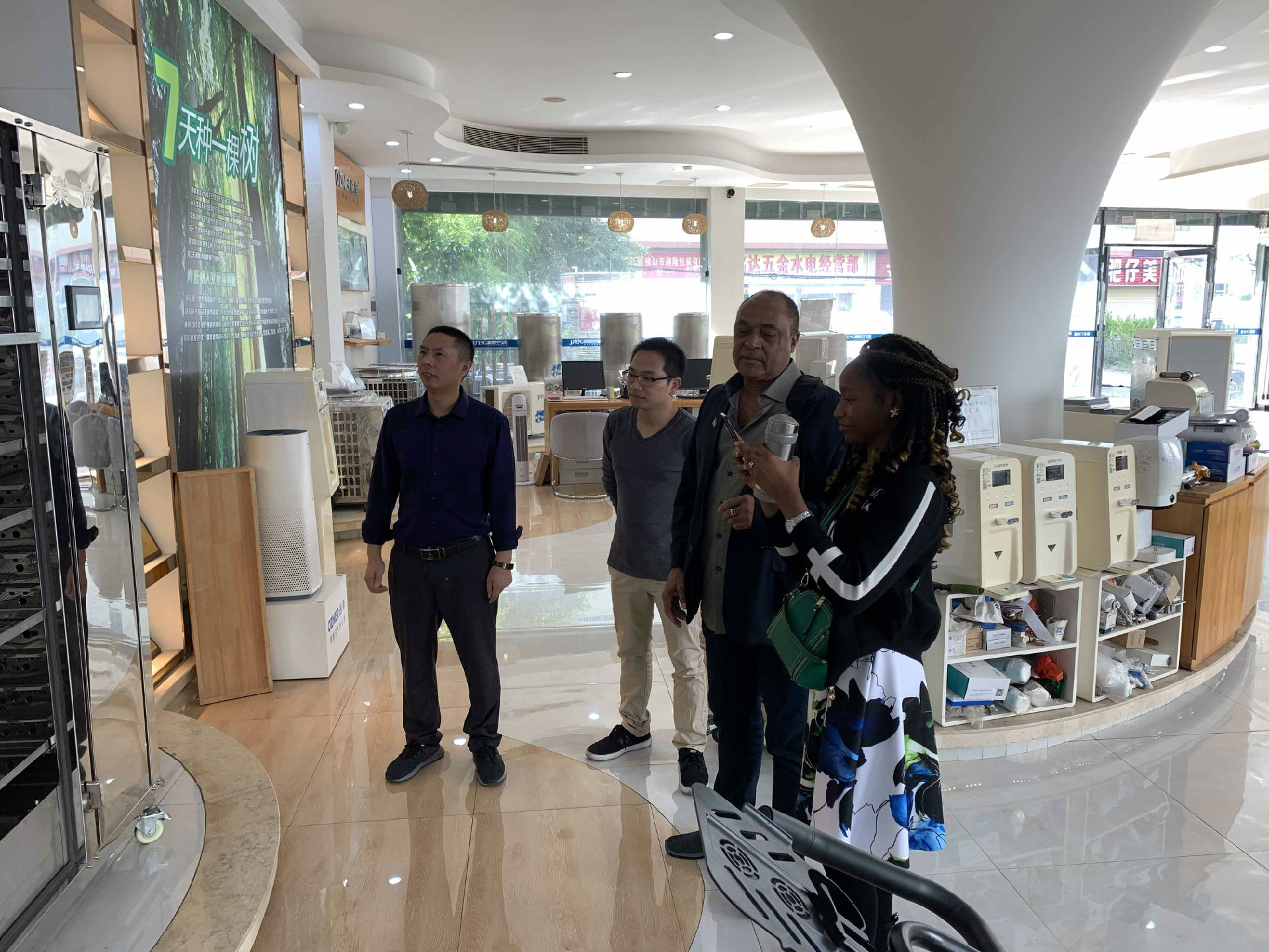 从国外远道而来的Hilton先生莅临聚腾专卖店参观访问,对产品进行细致考察,