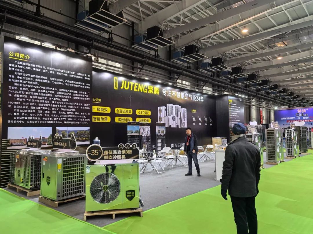 The exhibition was held unprecedentedly grand, Juteng air source in the scene has a large air source product display area and on-site consulting meeting area, Juteng also grand exhibition of heating, cooling, hot water, drying and other full series of innovative iteration of stainless steel air source star products.