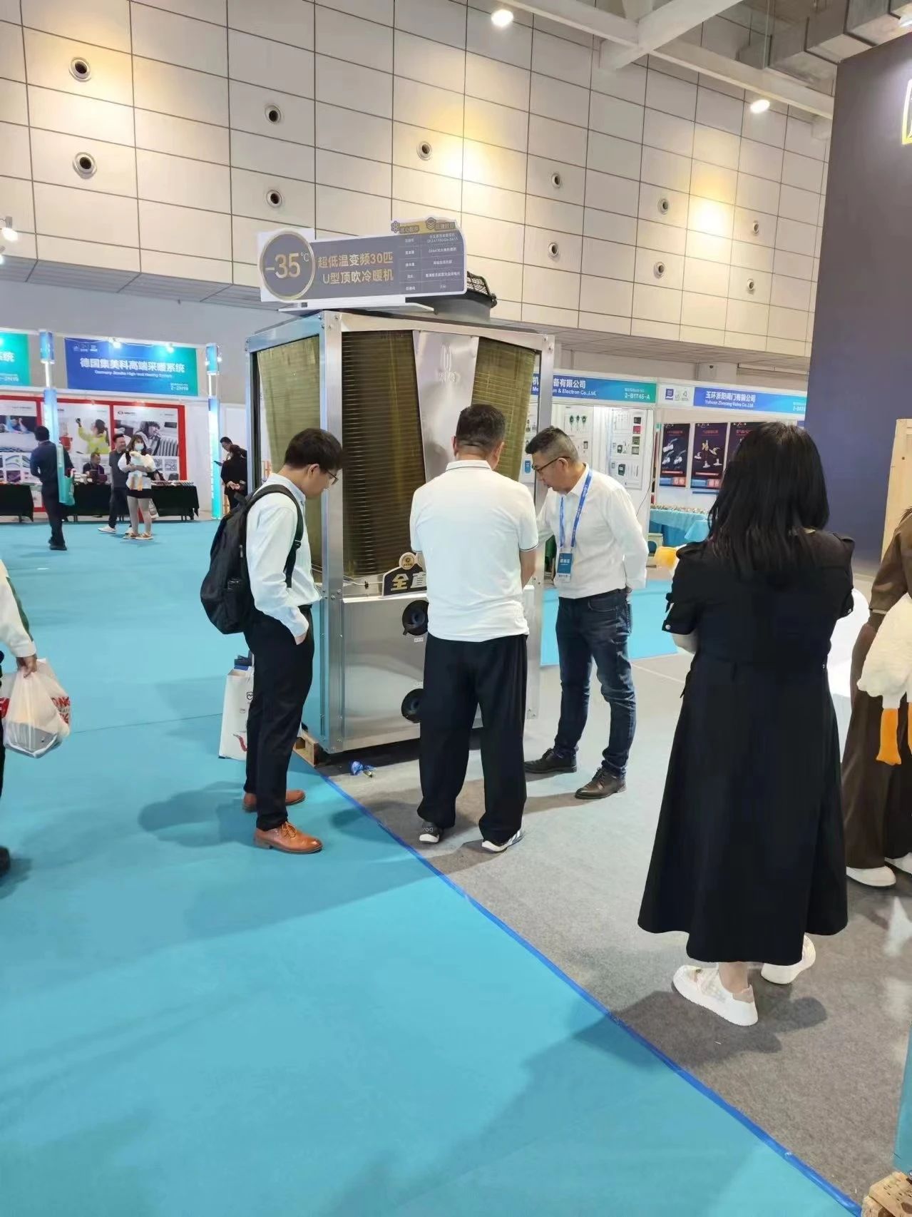 Although the heating season has ended and the climate in Shandong has warmed up, the "Coal to Clean Energy" project is still a key project in the local area and even in the whole northern region, and countless visitors came to Juteng's booth to inquire about air source heating products. The stainless steel air source heating heat pumps of Juteng with full texture and high quality materials made the audience praise them again and again.
