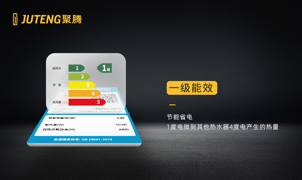 空气能热泵是一种节能型产品,能效比非常高。能效比是指输入电能和输出热能之间的比率。在选择空气能热泵的时候,需要考虑到空气能热泵的能效比。一般来说,能效比越高,空气能热泵的性价比就越高,使用起来也更加的经济实惠,例如聚腾空气能,专注一级能效,是空气能能效比最高一类产品。