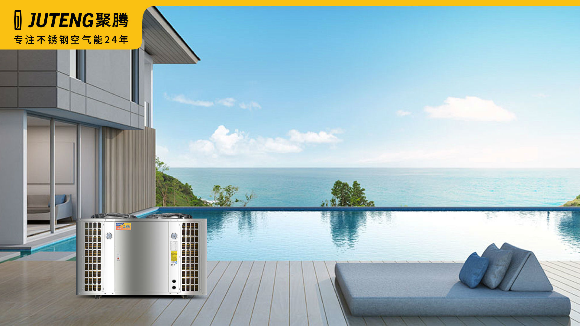 聚腾专注不锈钢空气能24年,创新永不止步,自主研发生产的双一级能效不锈钢空气能泳池热泵,冷热两用,真正实现四季恒温——